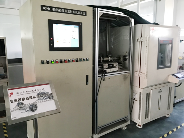 模拟实车安装在试验台,将操纵机构总成及防尘罩固定,通过伺服电机驱动装置实现在高低温环境中对操纵机构模拟换档动作的疲劳耐久试验及防尘罩耐折牢性进行测试